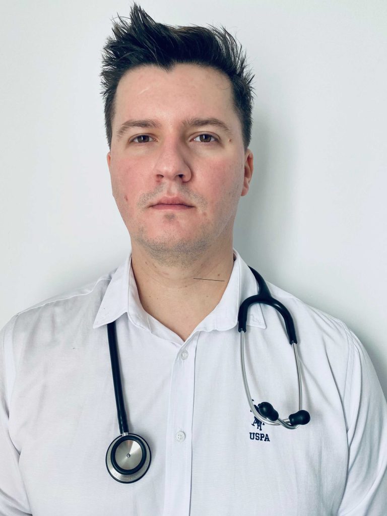 Doctor medic specialist neurologie, absolvent al Universitatii de Medicină și Farmacie „Carol Davila” București, specializat in diagnosticul și tratamentul patologiei neurologice acute sau cronice, atestat in ultrasonografie Doppler.
